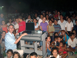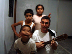 |   Some students did a short play and some adorable kids from the local kindergarten appeared dressed as fat midget dwarves(?!) The climax of the evening was—much to Lemon’s embarrassment—the projection of the new website onto a big screen accompanied by lots of ooohs and aaahs folowed by several hours of Marimba Zacapa and dancing nto the night. Needless to say is was all a roaring success and we were superstars of Zacapa, for one night at least.  |