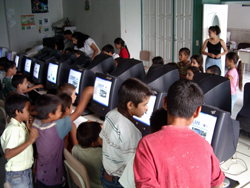 As the day unfolded it transpired that more and more events were taking place. Thousands of people descended upon the Centro Cultural. Kids were making Zacapita models in the library. The computer room was full of eager beaver children checking out the website and doing untold damage to the hardware. There was a dance competition (all Hondurans can dance the "Pirulino") and later on, as the darkness descended, several groups of traditional Honduran dancers appeared, occasionally joined by a feisty Zacapita which drew hails of jocular laughter.  |