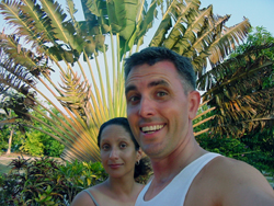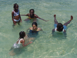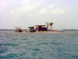 It must have impaired his ability to read his compass because as we headed for Honduras we could see beautiful beaches and sunbathing families and not the huge industrial port we were expecting. We flagged down a passing rowboat and discovered we were a few miles off course. If it was not enough to be lost, disaster then struck. The engine died. The captain started pulling the engine apart to diagnose the problem. Meanwhile the tide was sucking us towards shore where several excited locals were gathering to welcome us. Steve, the cyclist jumped overboard to try and stop us from running aground. The deported Hondurans seized the chance to encourage someone to take the wheel and steer us back to Belize. Finally the motor spluttered back to action and we gently puttered our way past huge ocean liners to the immigration shack.  |