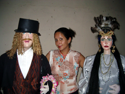 |   The Great Zacapa Carnival Caper Thus it was carnival time. Our small slumbering pueblo was deluged with activity for seven loud and rowdy days during which everyone gets drunk and very loud firecrackers were set off at 4:30AM every morning in a traditional "ceremony" called "La Alvorada". The town was tarted up with cheery bunting hung from every lamp and fixture, stages were erected in each neighborhood and most curiously, trees were ripped up to plant shrubs (which in tuirn were ruthlessly tampled by the throngs). For the first time ever taxis could be seen trawling the streets. Strangers flocked into town. Stalls were set up around the main plaza including kiddy rides and "tombola" type games. Our humble contribution was in the form of a 12 foot high giant puppet based on a traditional Honduran design called a “mojiganga” which waddled out into the crowded streets to much awe.  |
