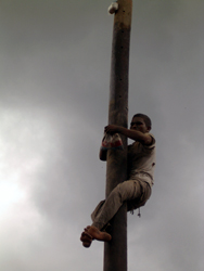 Unfortunately, not all the fun is jovial and joyous. There is also a greased pig contest and a rodeo where savagely starved cattle are yanked about on ropes and ridden on to apparent great applause. Also there is a ‘Rey Feo’ (ugly king) coronation and lots of parades. Who doesn't love a parade? One of the saddest moments was watching a poor ratty kid risk his life to climb a 20 foot high greased poll in an agonizingly slow and tense fashion to retrieve 450 Lempiras (about $25) at the top. Egged on by hundreds of onlookers, it was the undoubted hit of the week but it all seemed so...well, pointless. The poor boy did finally get his prize but collapsed and feinted when he slid back down to tierra firma, his feet and hands blistered and bleeding whereupon he was mobbed, revived and carried away on adoring shoulders.  |