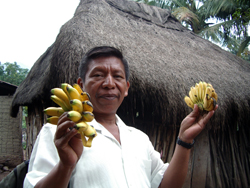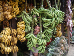 miniature bananas and makes hats out of “junco” a kind of