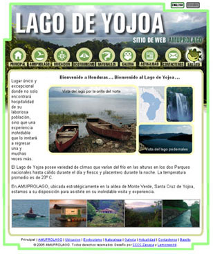 Website for AMUPROLAGO / Lake Yojoa Protection Agency (Honduras) 2004